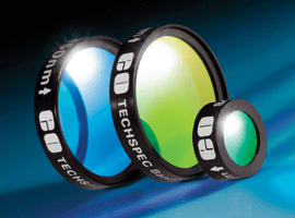 TECHSPEC Imaging Filters are designed to meet demanding machine vision and imaging applications. Optimized for use with popular LEDs, the imaging filters pass or block specific UV, Visible, or IR wavelengths to provide very wide angles of incidence. Extremely high and flat transmission profiles provide even illumination; the filters improve image contrast and isolate spectral regions and colors. TECHSPEC Imaging Filters are available in 90 models with multiple mounting sizes and threads for easy system compatibility. All TECHSPEC Imaging, Shortpass, and Longpass Filters are in-stock and available for immediate delivery for fast turnaround and excellent value.