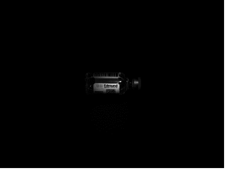The images in Table 2 were taken with the same camera and lens setup as before, except that a bar light was used to produce the partial brightfield illumination. The illumination effect of the bar light is similar to the spot light, as seen in the similarity of the above images with the previous images taken with the spot light. The wide shape of the bar light makes it easier to light larger objects like the label (Panel C). However, it also makes it more challenging to image reflective areas without creating hotspots from scratches or digs. The bar light also creates a different glare pattern which is evident on the medicine vial bottle (Panel A).